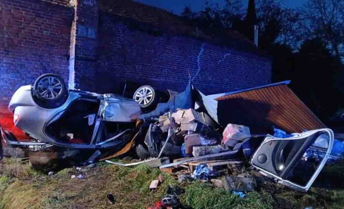 Pijany 44-letni mieszkaniec powiatu kościańskiego stracił panowanie nad prowadzonym przez siebie samochodem i swoją bezmyślną jazdę zakończył dachując po uderzeniu w ogrodzenie, blaszany garaż oraz mur budynku gospodarczego,