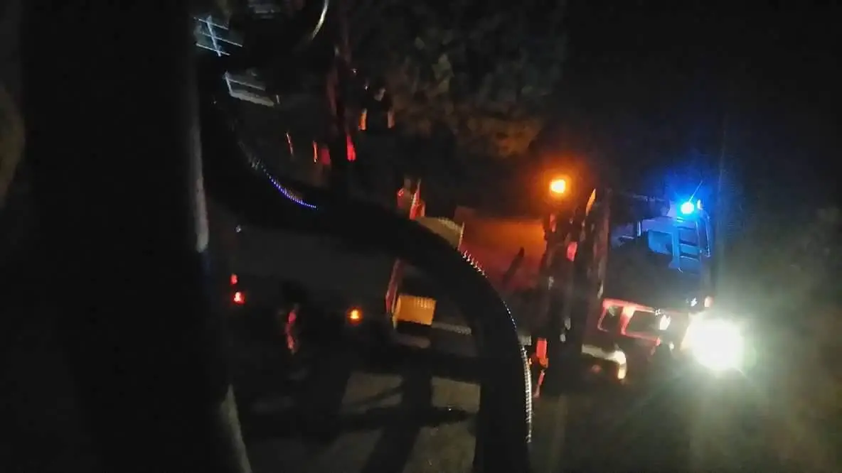 Na dół zostali sprowadzeni przy pomocy wysięgnika z koszem, którym przyjechała wezwana na pomoc straż pożarna.