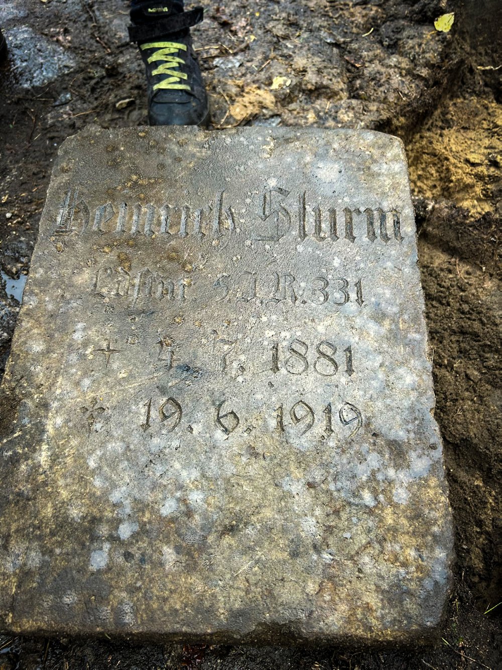 Na terenie policji przy ul. Batorego odkopano dzisiaj poniemieckie płyty nagrobne, które w czasach minionych usunięto z cmentarza Zielonego Krzyża (obecny Park Tysiąclecia). Chodziło o to, aby zatrzeć wspomnienia o ludziach kiedyś zamieszkujących i tworzących Zielona Górą.