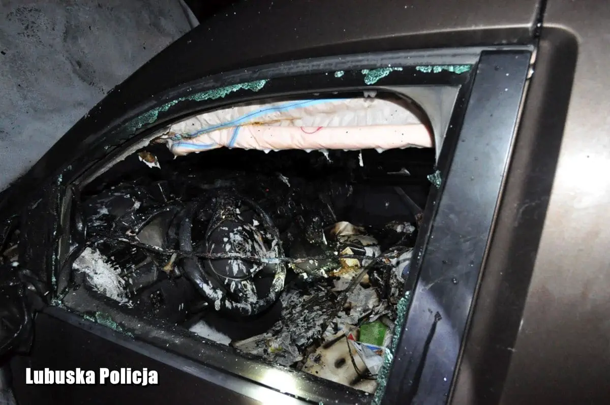 Podpalił samochód, który doszczętnie spłonął wraz z zawartością. Właściciel oszacował straty na blisko 100 tys. zł. Podpalacz został zatrzymany przez międzyrzeckich policjantów. 42-latek usłyszał zarzut uszkodzenia mienia, za co grozi mu kara do 5 lat więzienia.