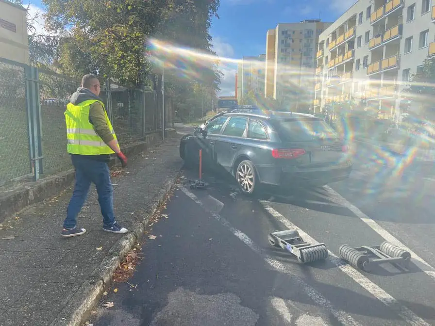 Do zdarzenia doszło w środę, 13 października. Policja oraz lawety pomocy drogowej pojawiły się na ul. Rydza Śmigłego.