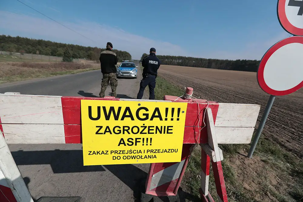 Policjanci pomagają służbom weterynaryjnym przy zwalczaniu afrykańskiego pomoru świń (ASF) na fermie trzody chlewnej w Niedoradzu. Nowosolska policja oraz wojsko na okrągło pilnują dróg dojazdowych do fermy. Dojazd do fermy został zamknięty.