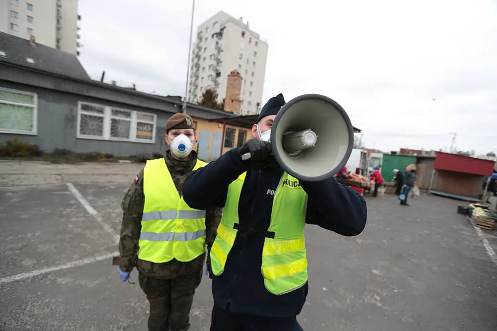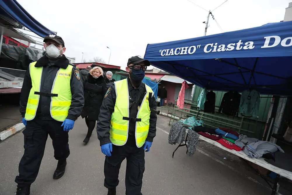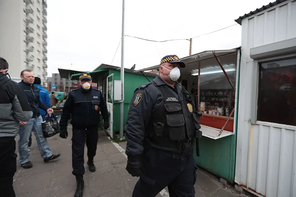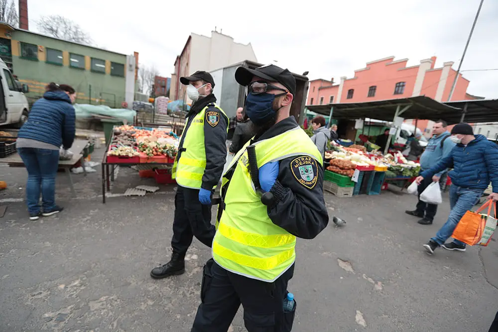 W sobotę, 4 kwietnia, od samego rana na targowisku przy ul. Owocowej byli policjanci, strażnicy i wojsko. Nad targowiskiem latał dron strażaków z OSP Jarogniewice. Co chwilę z megafonu słychać było komunikaty dotyczące zachowania odstępów od siebie.