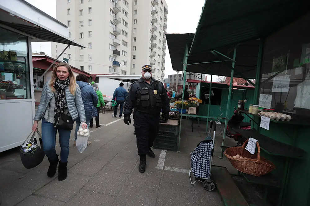 Na targowisku było sporo ludzi, ale znacznie mniej niż przed wybuchem epidemii koronawirusa. Na targowisku były też wspólne patrole policji, wojska oraz straży miejskiej. Zwracali szczególną uwagę na to, żeby ludzie nie stali w grupach i zachowywali od sobie odpowiednią odległość. Targowisko oraz jego okolice były kontrolowane również z drona strażaków OSP Jarogniewice. Z powietrza widać duży obszar, co znacznie uławia jego patrolowanie. Z megafonów co chwilę słychać było komunikaty o tym, żeby nie stać w grupach i zachować od siebie bezpieczną odległość.