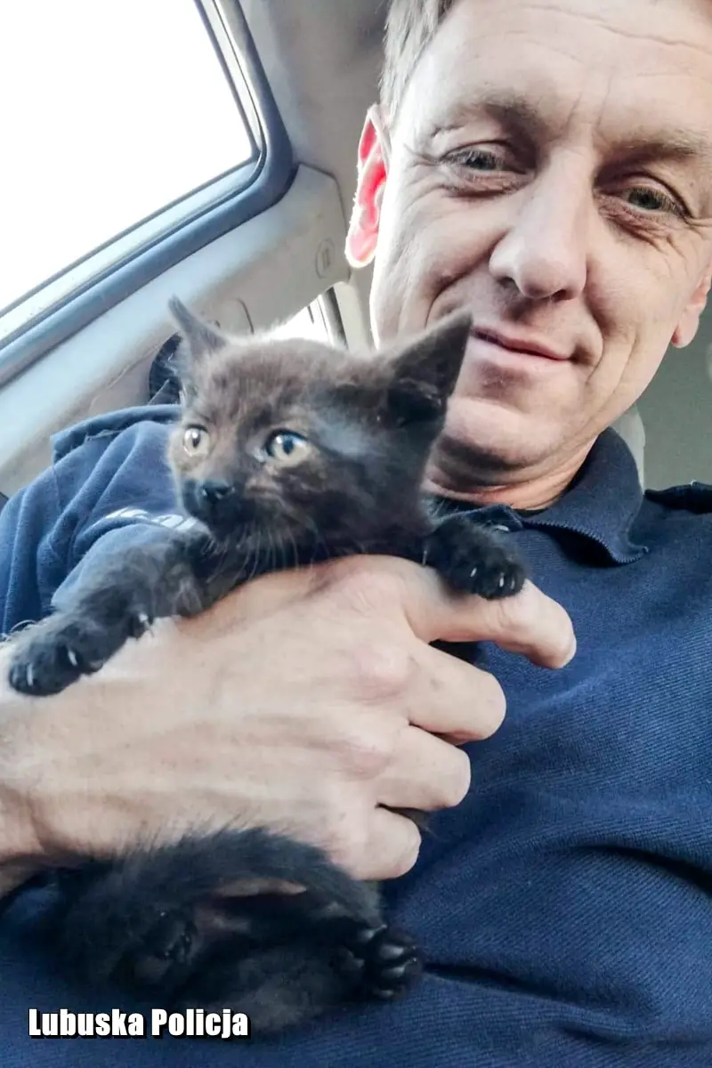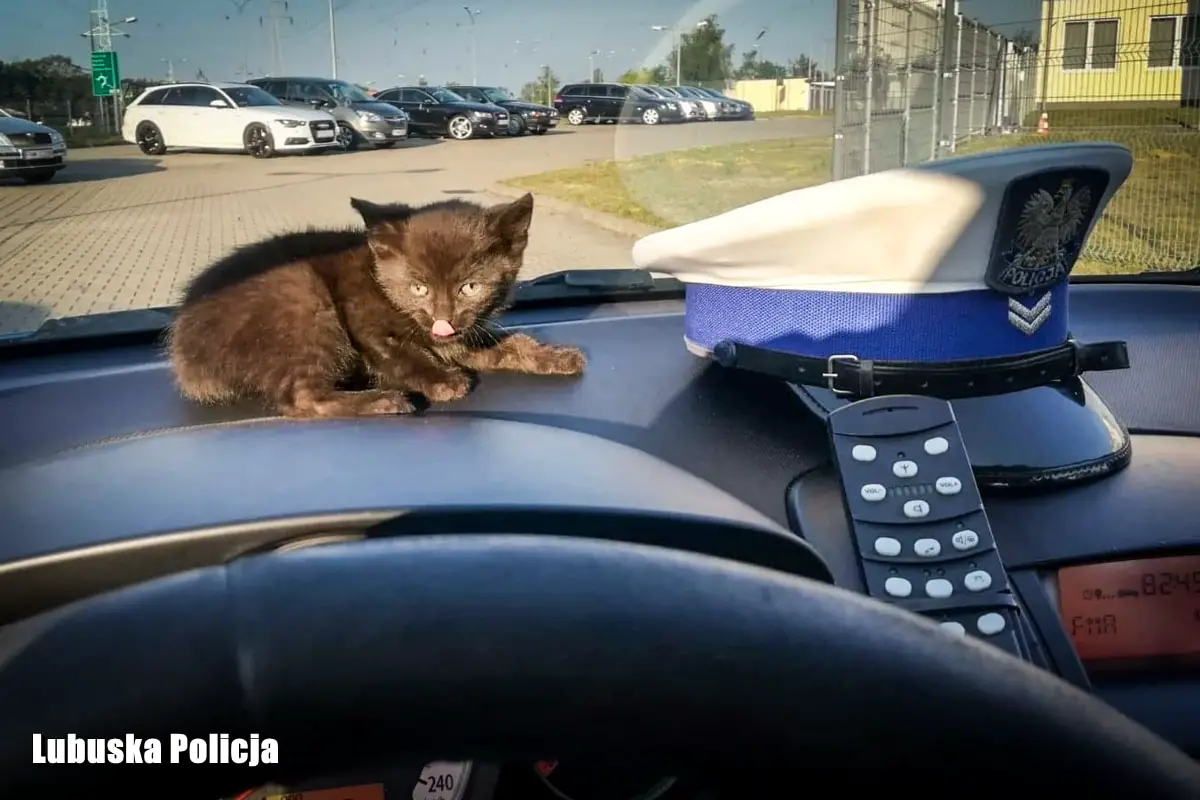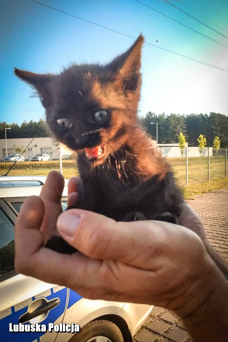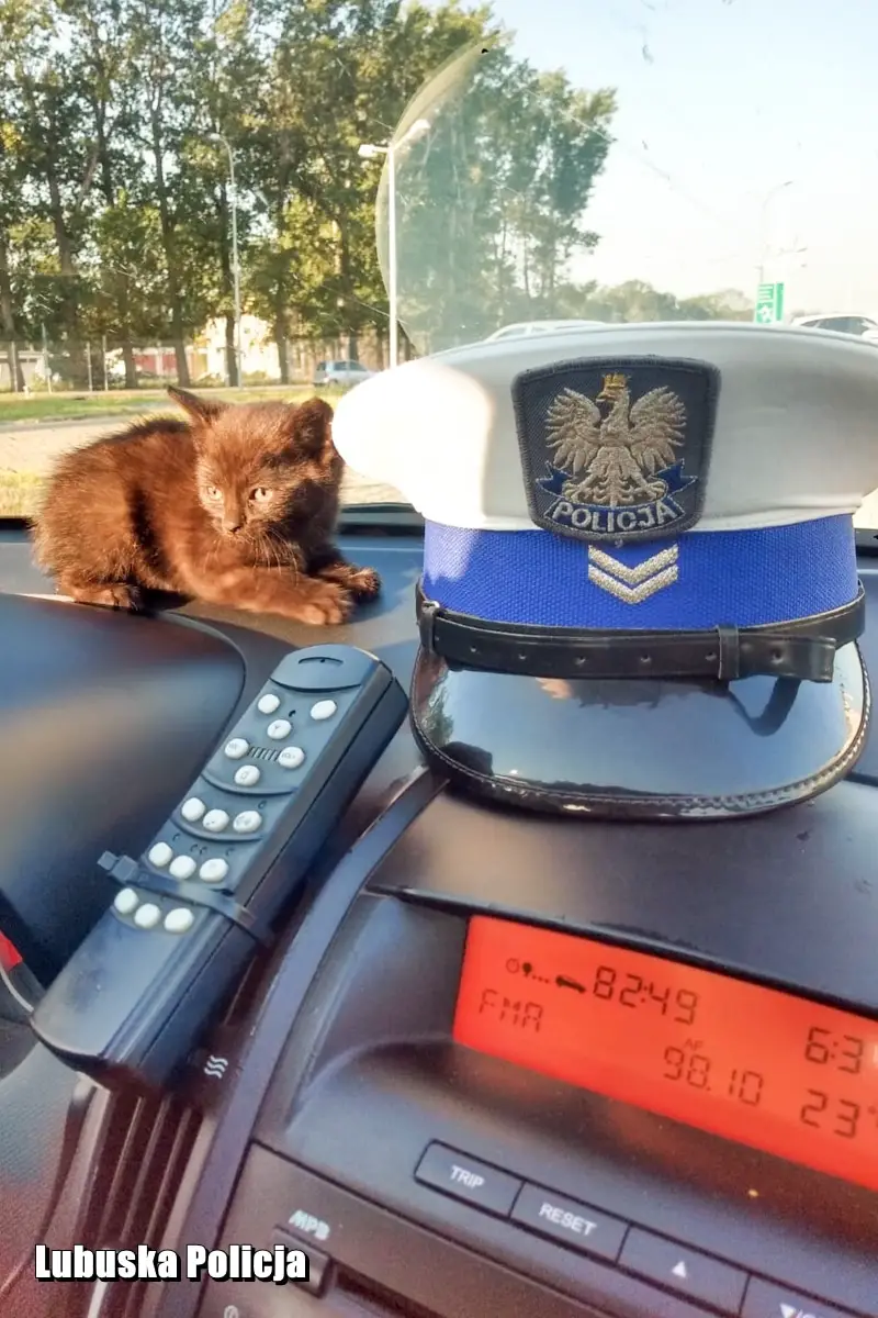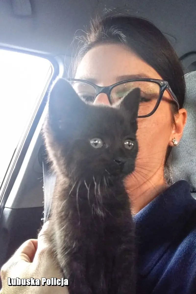 Z uwagi na nadchodzący upał, decyzja była jednomyślna – „ratujemy kota”. – Nasłuchując dźwięk miauczenia ustalili, że zwierzak znajduje się pod lewym reflektorem na nadkolu – relacjonuje sierż. szt. Dąbrowicz – Kozłowska. Aby go wydobyć odkręcili koło oraz zdemontowali nadkole i wtedy za reflektorem zobaczyli maleńkiego, przerażonego czarnego, dwumiesięcznego kotka. Policjant ustalił, że maluch może należeć do jego sąsiadki. Po napojeniu wodą, kotek został od razu odwieziony i oddany szczęśliwej właścicielce, która bardzo ucieszyła się z odzyskania swojej zguby. To jednak nie był koniec tej historii.
