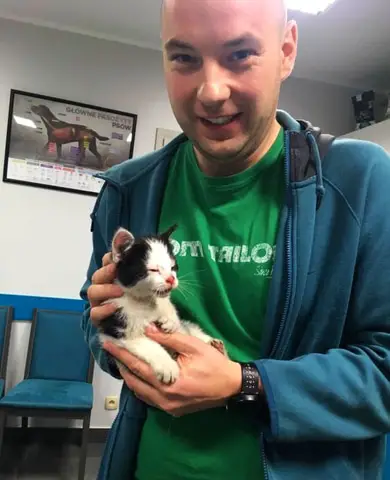 Potrącony mały kotek leżał na środku drogi krajowej nr 92. Potrzebował pomocy. W każdej chwili mógł zostać przejechany przez samochód. Mł. asp. Maciej Kimet zatrzymał swój samochód, wstrzymał ruch na drodze i zabrał kotka do weterynarza.