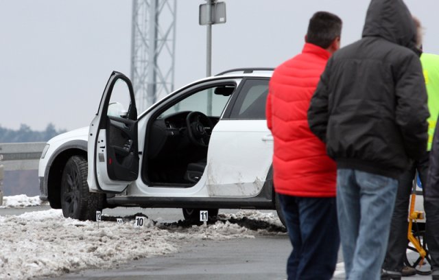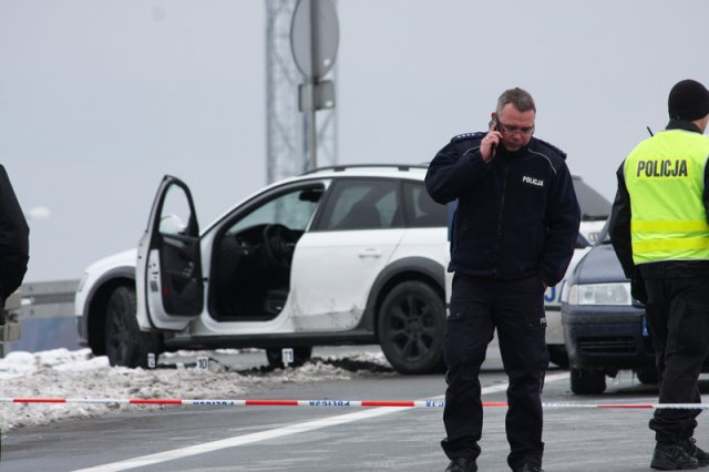 Kierowcy ciężarówek próbowali blokować drogę uciekającemu audi. Na wiadukcie w okolicy miejscowości Stok koło Świebodzina audi udało się zatrzymać. Policjanci podbiegli do kierowcy. Z niepotwierdzonej informacji wynika, że jeden z policjantów chciał przez okno wyciągnąć kierowcę. Wiadomo, że doszło do szarpaniny z uciekinierem. Wtedy padł strzał. Kula trafiła policjanta w głowę. Niestety, funkcjonariusz zginął na miejscu. To 36-letni policjant ruchu drogowego, sierżant z 13-letnim stażem w policji. Osierocił żonę i dwójkę dzieci. Rodzinie zmarłego policjanta zapewniono opiekę psychologa.