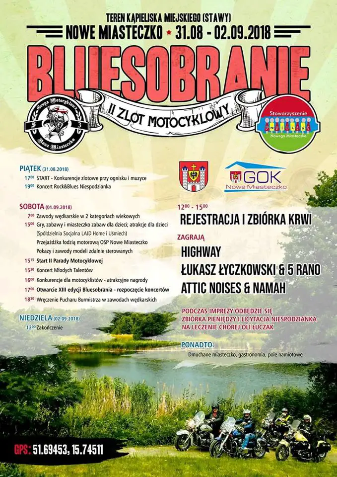 W piątek, 31 sierpnia, o godz. 17.00 rozpocznie się piknik motocyklowy oraz bluesobranie na terenie kąpieliska miejskiego w Nowym Miasteczku. W sobotę o godz. 15.15 na rynku miejskim wyruszy II parada motocyklowa. Podczas całej imprezy do puszek będą zbierane pieniądze na leczenie chorej Oli, u której w sierpniu 2015 r. zdiagnozowano złośliwy nowotwór mózgu.