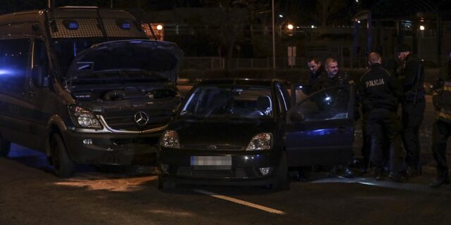Mężczyźni z forda zostali obezwładnieni, skuci kajdankami i przewiezieni na komendę.