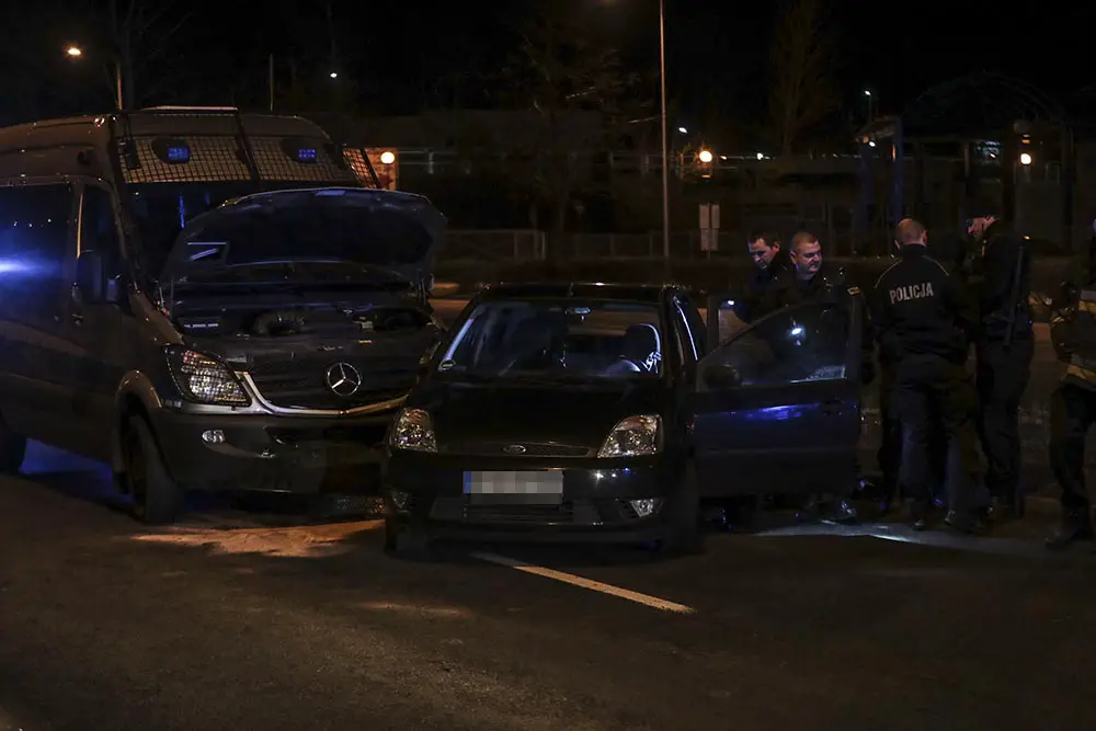 Mężczyźni z forda zostali obezwładnieni, skuci kajdankami i przewiezieni na komendę.