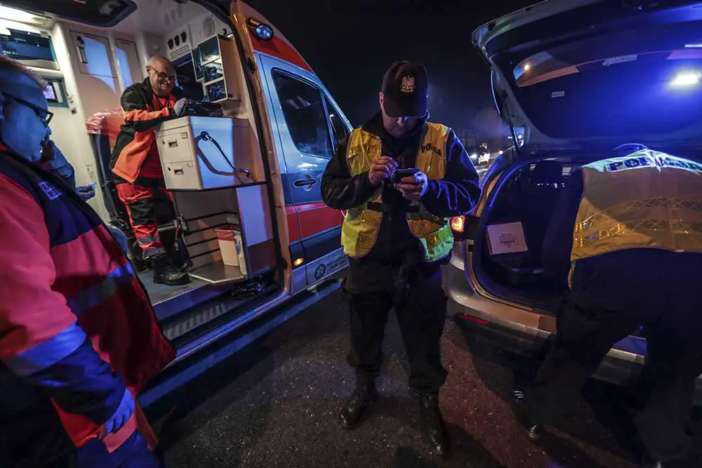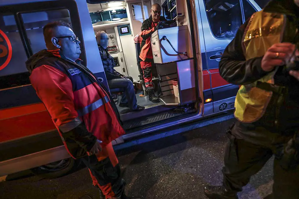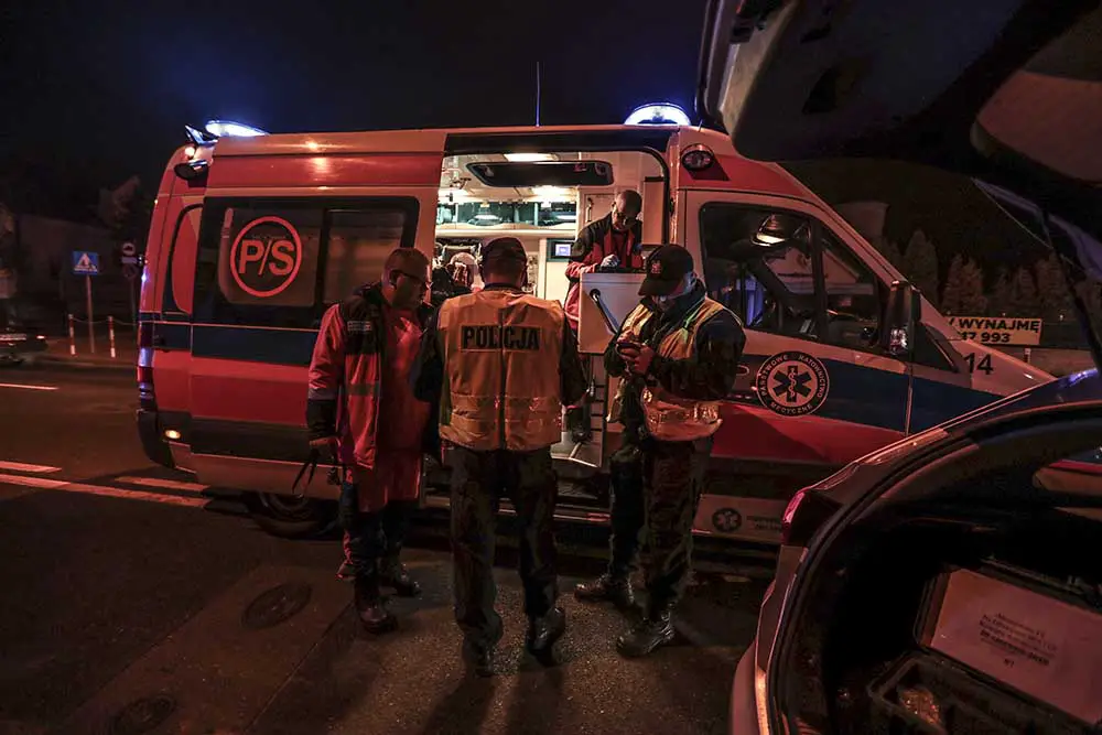 Na miejsce wypadku przyjechały karetki pogotowia ratunkowego. Potrąceni mężczyźni zostali zabrani do szpitala. Jednego do karetki zaniesiono na noszach.