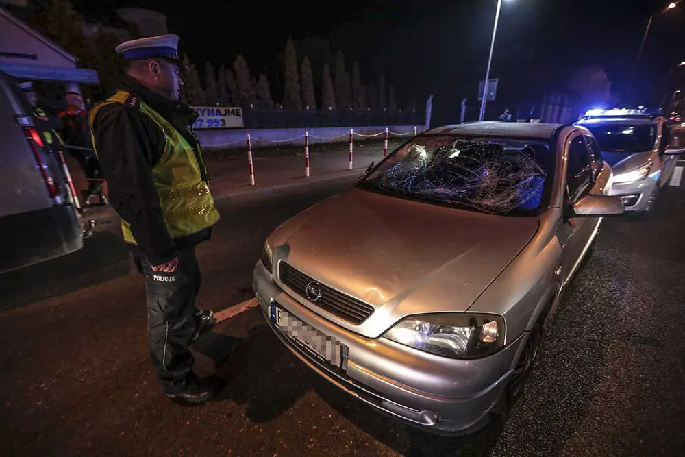 Do potrącenia doszło około godz. 19.00. Kierujący oplem jechał ul. Sulechowską w kierunku centrum miasta. Na przejściu dla pieszych koło skrętu w ul. Urszuli potrącił dwóch mężczyzna. Siła uderzenia była bardzo mocna. Kierowca nie hamował. – Jestem po 12 godzinach w trasie – przyznał policjantom sprawca potrącenia.
