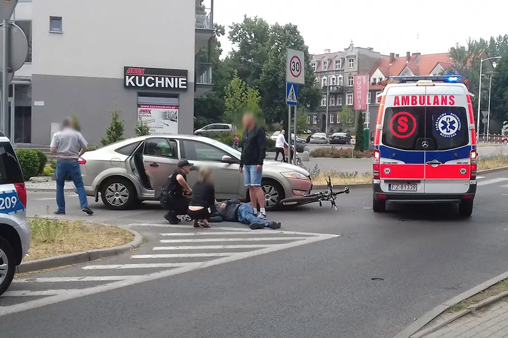 Rowerzysta został potrącony przez kierującego fordem mondeo, który wyjeżdżał z osiedla. Ranny rowerzysta został przewieziony do szpitala.