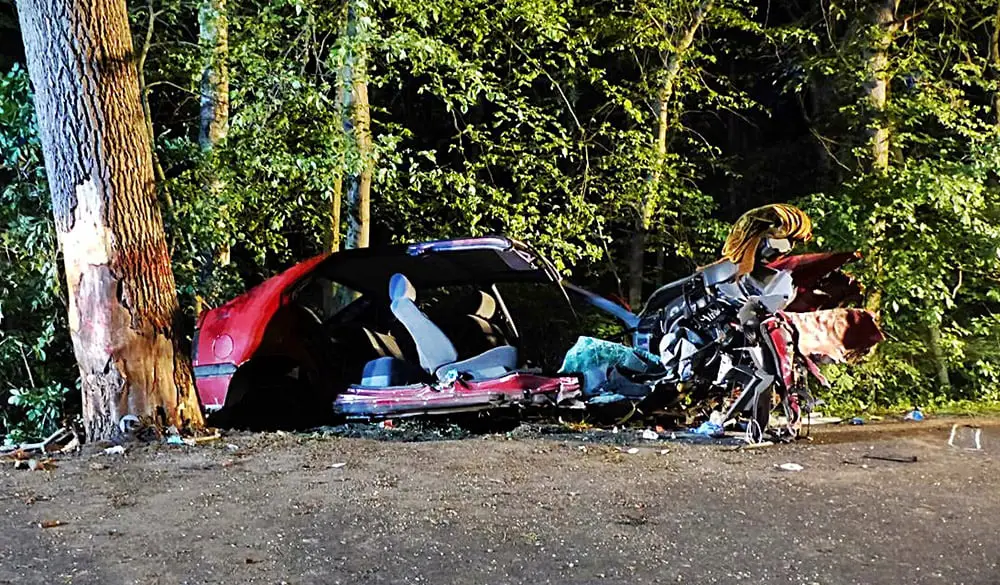 Kierowca z Kargowej na trasie Kargowa-Babimost z dużą siłą uderzył w drzewo. Na miejsce wypadku dojechały dwa zastępy strażaków z Wolsztyna oraz z OSP z Kopanicy i Siedlca oraz karetki pogotowia ratunkowego. Trzy osoby były zakleszczone w aucie.