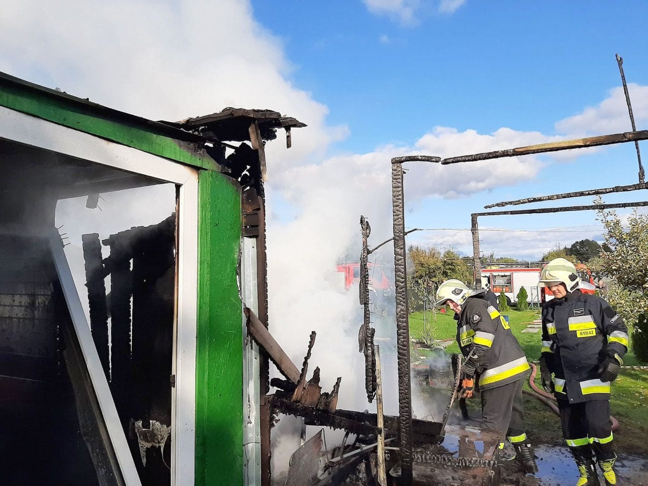 Strażacy OSP Skwierzyna oraz jednostka zawodowa z Międzyrzecza natychmiast zaczęli gaszenie pożaru. W kilka minut opanowali pożar. W czasie akcji strażacy zauważyli, że 39-letni właściciel altanki doznał poparzenia twarzy. Natychmiast na miejsce została wezwana karetka pogotowia ratunkowego. Strażacy udzielili poparzonemu mężczyźnie pierwszej pomocy. Potem zajęła się nim ekipa karetki. Ustaleniem przyczyny pożaru zajmą się policjanci.