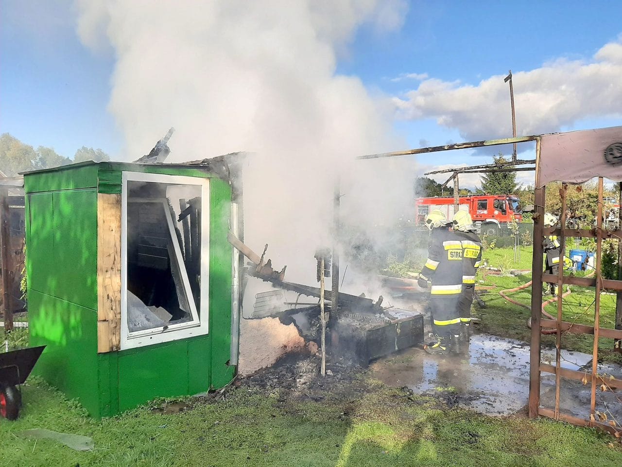 Do pożaru altany doszło w niedzielę, 6 października, na ogrodach „Wiarus” w Skwierzynie. Kiedy strażacy dojechali na miejsce altanka była już cała w ogniu.