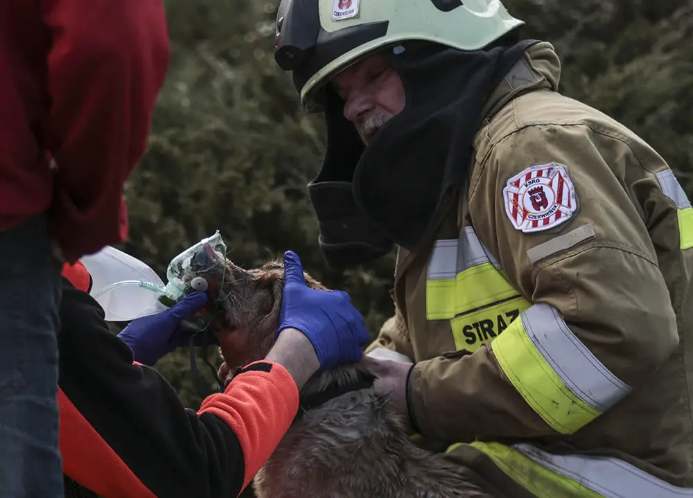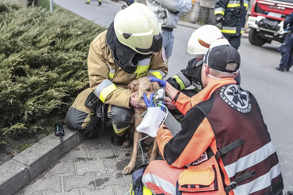 Do zdarzenia doszło w czwartek, 26 marca, w Płotach koło Zielonej Góry. Na ul. Leśnej wybuchł pożar domu jednorodzinnego. Strażacy z płomieni wynieśli psa, a ekipa pogotowia podała mu tlen.