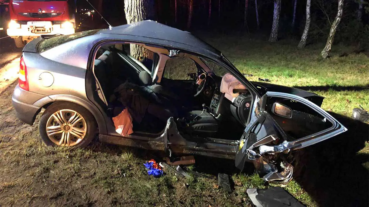 Auto uderzyło bokiem w drzewo przy drodze. Na miejsce została wezwana policja, straż pożarna oraz karetka pogotowia ratunkowego. Siła uderzenia musiała być ogromna. Strażacy musieli rozcinać samochód, aby wydostać zakleszczone w nim osoby.