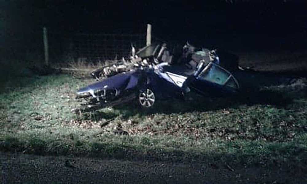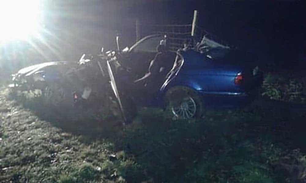 Kierujący bmw na trasie koło Klępska wypadł z drogi. Na poboczu bmw uderzyło w drzewo. Siła zderzenia z drzewem była ogromna. W aucie zostały zakleszczone trzy ranne osoby. Elementy samochodu leżały porozrzucane na jezdni. Z bmw wypadł nawet silnik.