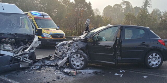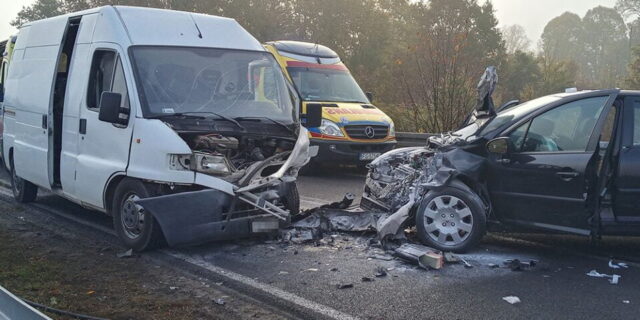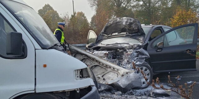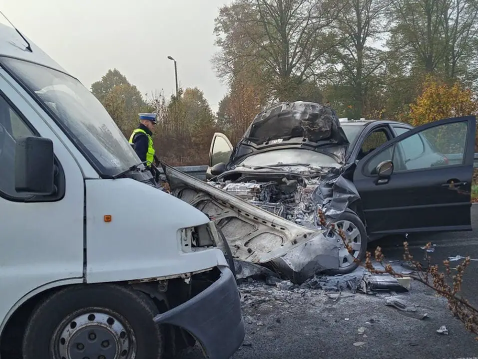 Do poważnego wypadku doszło we wtorek, 22 października na trasie koło miejscowości Wysoka pod Gorzowem. Peugeot czołowo uderzył w busa i zaczął się palić. Ranne zostały cztery osoby.