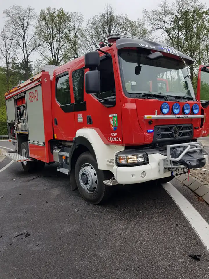 Na miejsce czołowego zderzenia skody i forda dojechali strażacy OSP Łęknica. Na miejscu zastali dwa bardzo mocno rozbite samochody. Jedną ranną osobę do szpitala zabrał śmigłowiec lotniczego pogotowia ratunkowego. Druga ranna osoba do szpitala trafiła karetką.