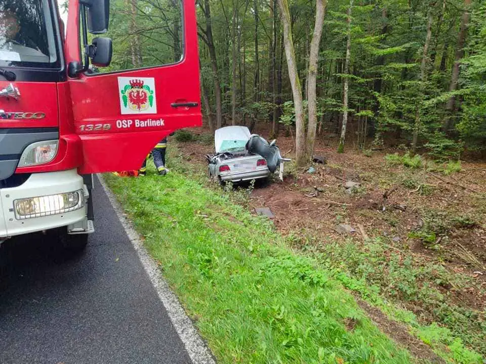 Na miejsce wypadku szybko dotarły służby ratunkowe, w tym OSP Barlinek. Poważnie ranny 23-latek został uwolniony przez strażaków z wraku bmw.