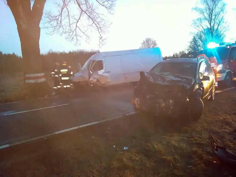 Do wypadku doszło przed godz. 7.00. Zderzyły się osobowy volkswagen golf i bus. Droga została zablokowana. Na miejsce przyjechały jednostki zawodowej straży pożarnej z Żar i jednostka OPS Lipinki Łużyckie. Strażacy zabezpieczyli miejsce wypadku. Pomogli również poszkodowanym kierowcom.