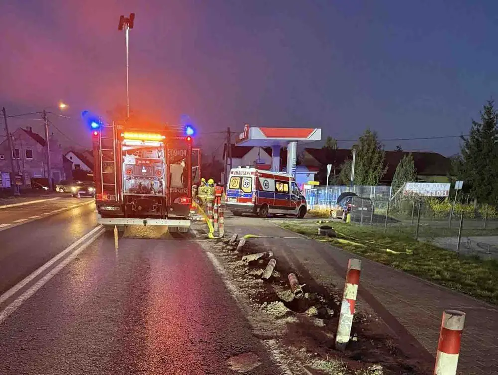 Do poważnego wypadku doszło w Bogdańcu. Kobieta kierująca fordem zasłabła w czasie jazdy. Skosiła słupki i zatrzymała się uderzając w ogrodzenie stacji paliw i stojak na butle z gazem.