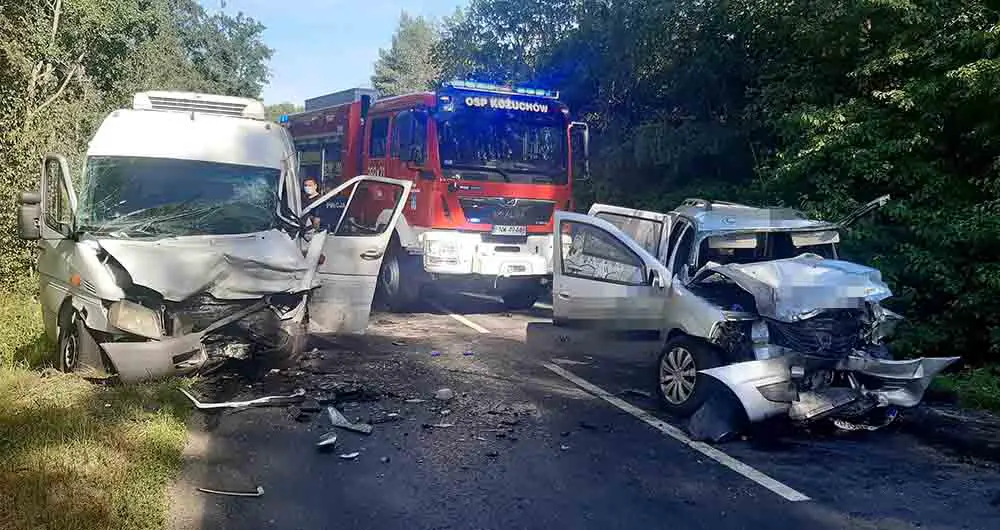 Do poważnego wypadku doszło w okolicach miejscowości Mirocin Dolny. Kierujący dacią z nieustalonych jeszcze przyczyn zjechał na przeciwległy pas ruchu i tam zderzył się czołowo z busem. Oba samochody zostały mocno rozbite. Na miejsce wypadku szybko dotarły służby ratunkowe, w tym wozy OSP Kożuchów oraz nowosolska policja. Strażacy uwalniali rannych z rozbitych samochodów. Ranne zostały trzy osoby. Karetkami pogotowia ratunkowego trafiły do szpitala.