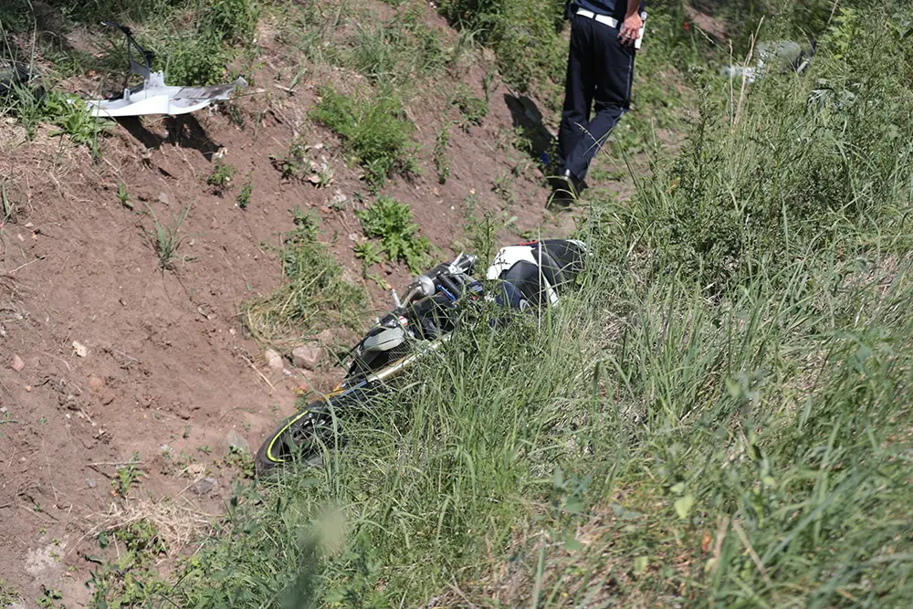 Mężczyzna jechał motocyklem ubrany w krótkie spodenki oraz półbuty. Może mówić o wielkim szczęściu. Zatrzymał się tuż obok betonowego przepustu. Gdyby w niego uderzył doszłoby do tragedii.
