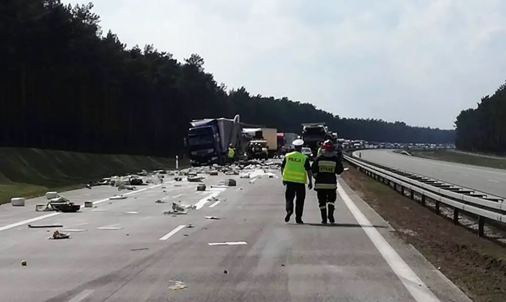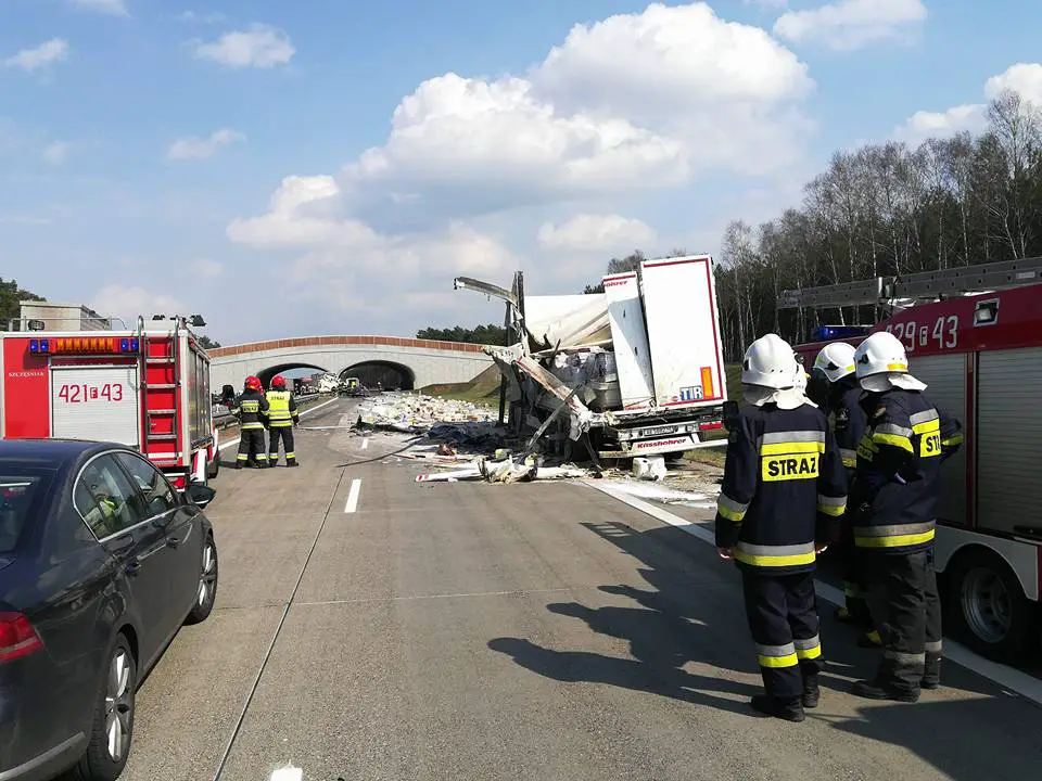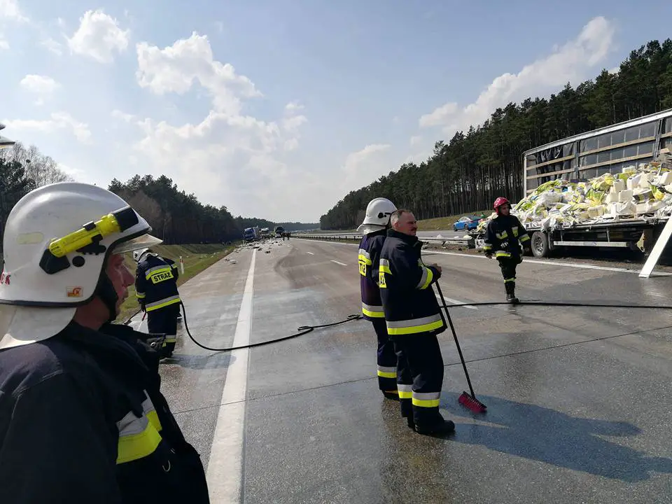 Autostrada jest zablokowana w obu kierunkach. Utrudnienia w ruchu na A2 potrwają wiele godzin. Trwa usuwanie skutków wypadku.