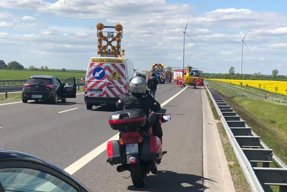 Na miejsce dotarły służby ratunkowe. Droga w kierunku Szczecina jest zablokowana. Wylądował również śmigłowiec lotniczego pogotowia ratunkowego.