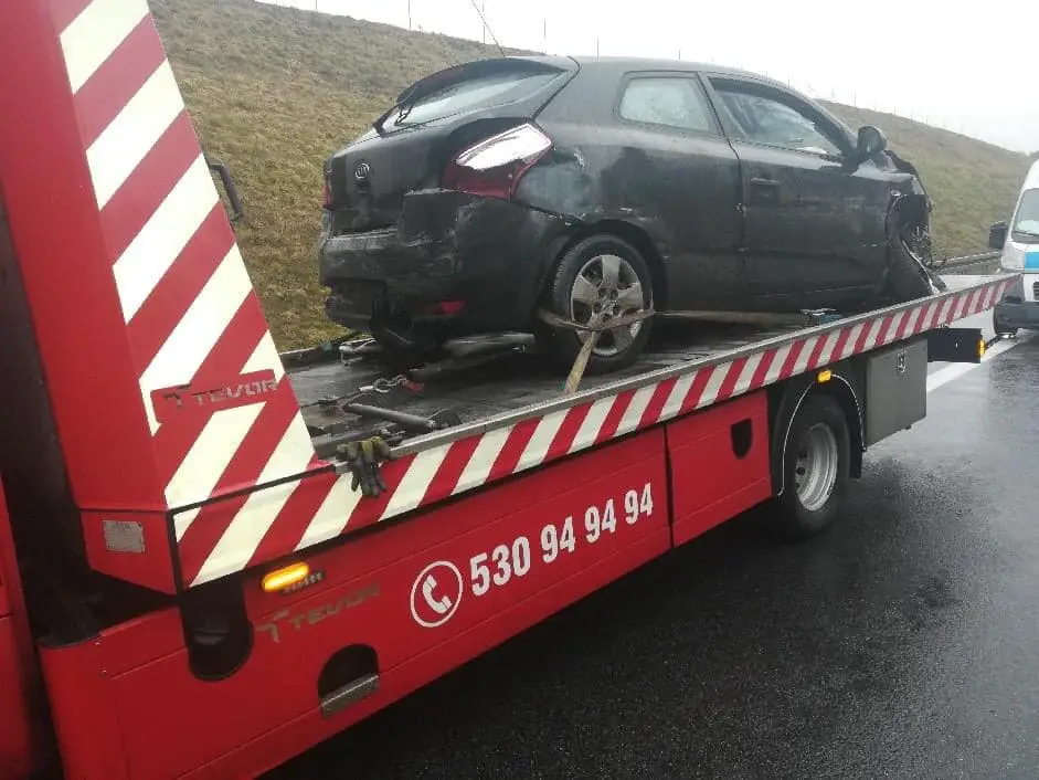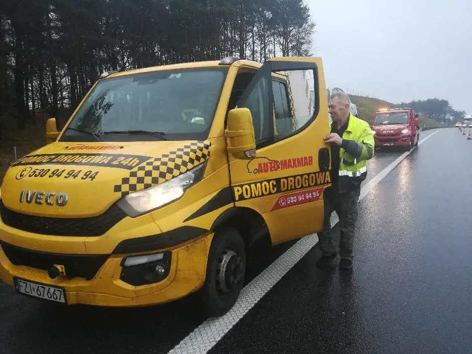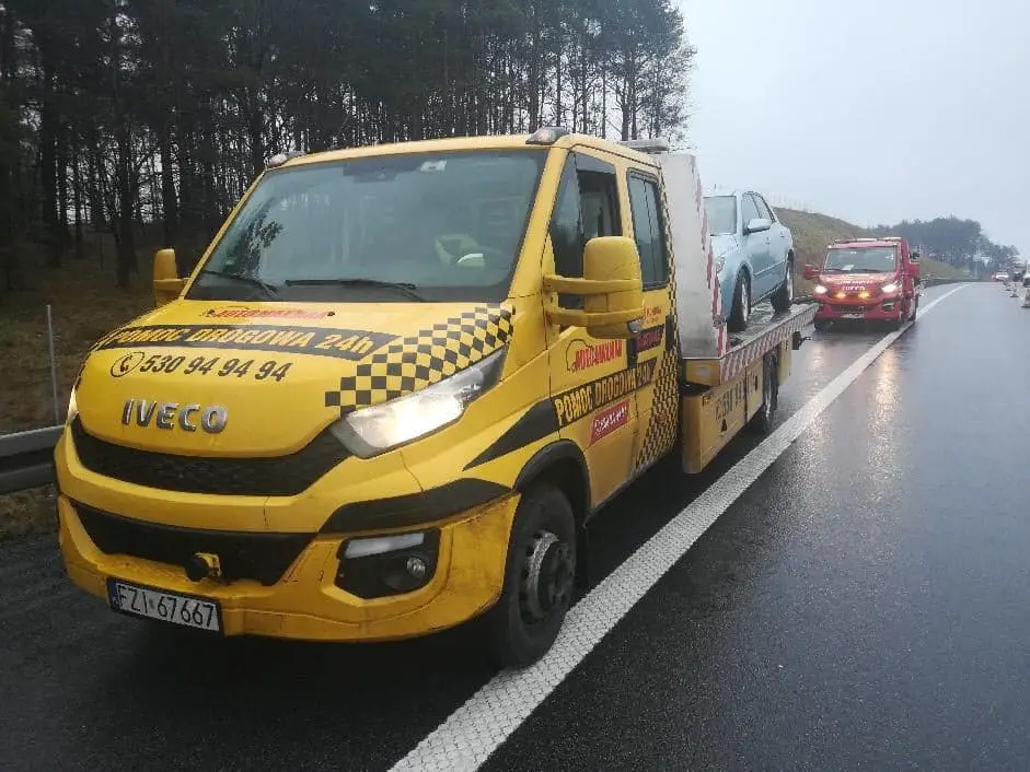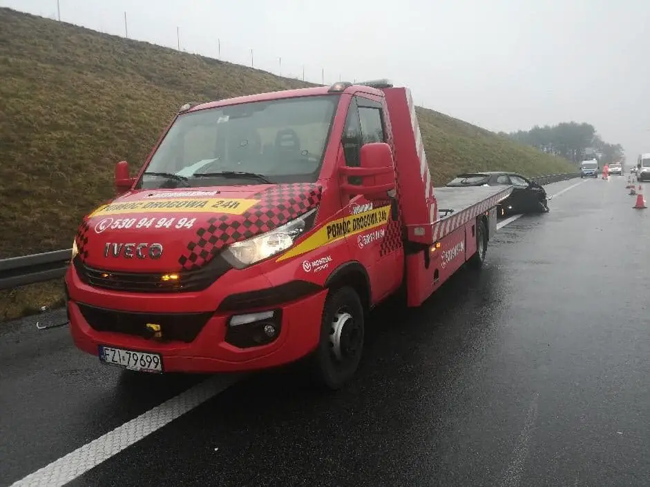 Godz. 11.22 Samochody uczestniczące w wypadku na polecenie policji odholowała z trasy S3 pomoc drogowa Maxmar.