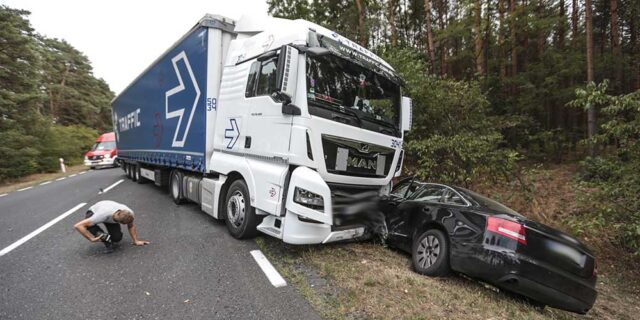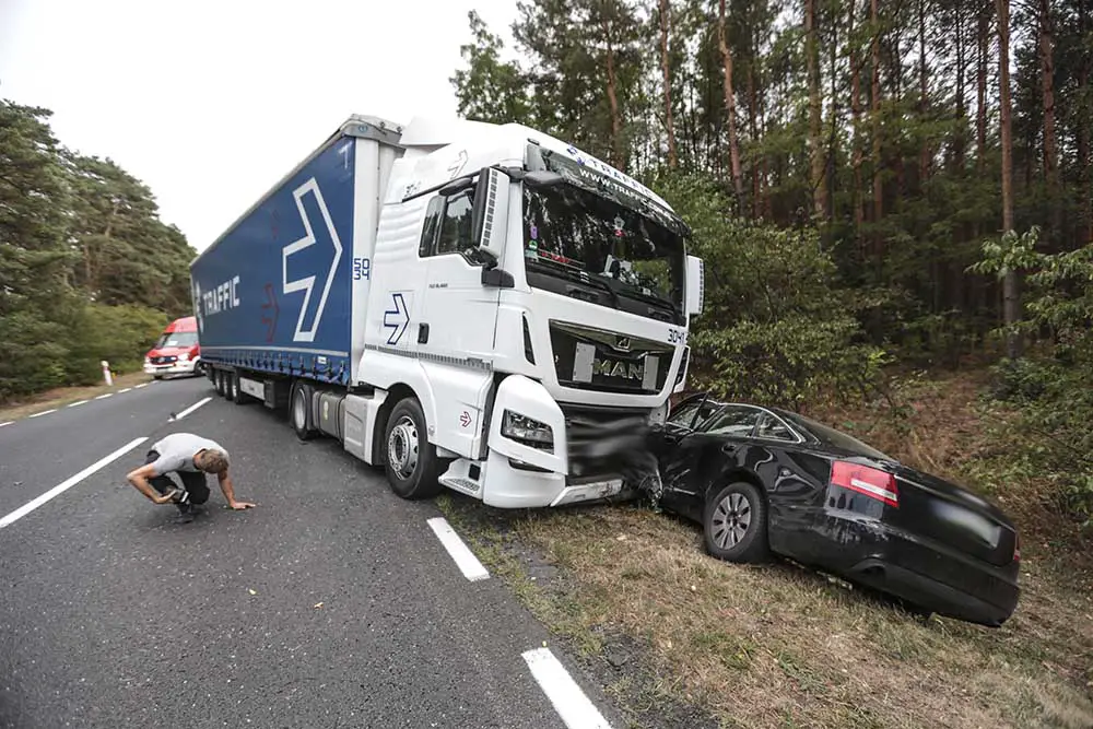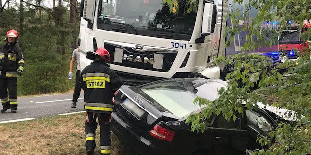 Do wypadku doszło w poniedziałek, 27 sierpnia, na trasie koło Leśniowa Wielkiego pod Zieloną Górą. Ciężarówka zderzyła się z audi. Kierowca audi jest kompletnie pijany. Wydmuchał ponad trzy promile alkoholu.