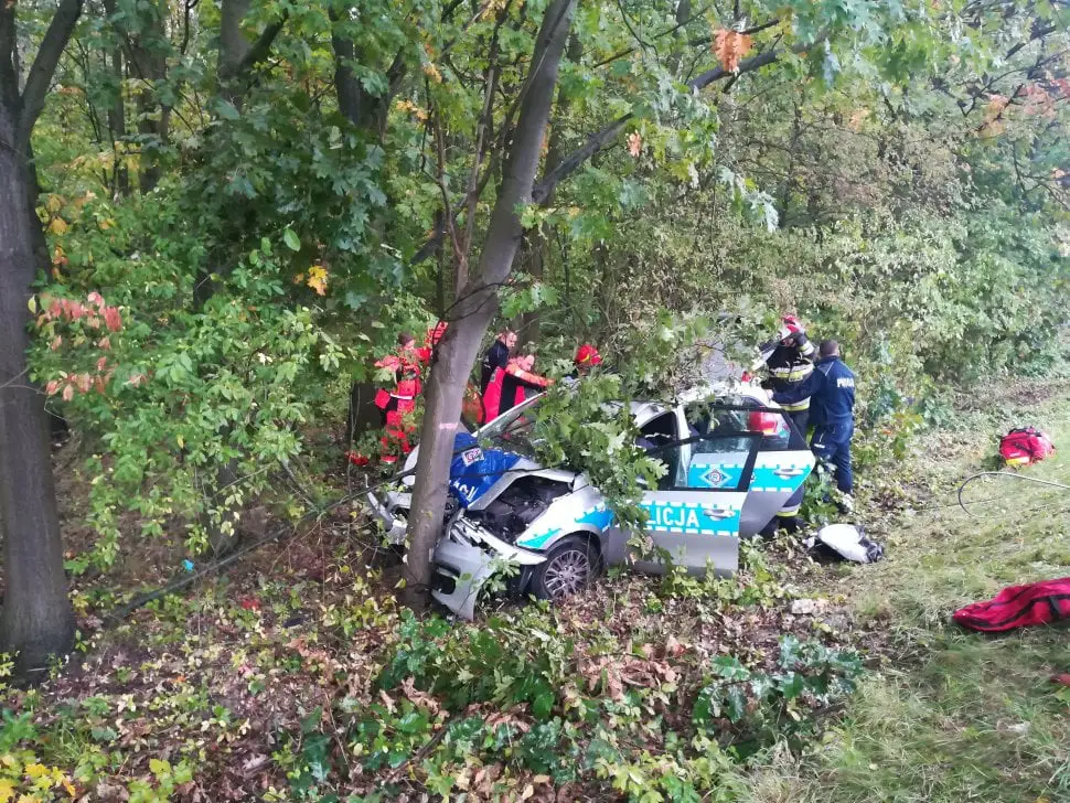 Po uderzeniu radiowóz wypadł z drogi i uderzył w drzewo. Dwaj policjanci, dzięki szybkiej pomocy strażaków i przybyłych służb, zostali wyciągnięci z rozbitego auta i ranni trafili do szpitala. Na miejscu wypadku, pod nadzorem prokuratora, pracowali tarnogórscy policjanci oraz strażacy.
