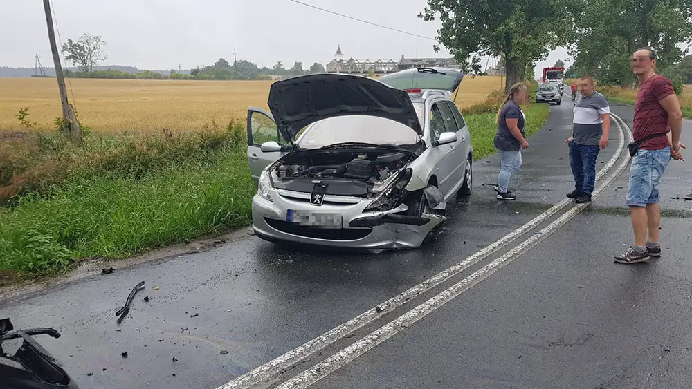 Do poważnego wypadku doszło na trasie koło Ołoboku, na drodze do Niesulic. Jak informują nas świadkowie wypadku, kierujący hondą skręcając z drogi zjechał na przeciwległy pas ruchu. Wtedy zajechał drogę kierującemu range roverem. Doszło do zderzenia. Po chwili w hondę uderzył jeszcze kierujący peugeotem.