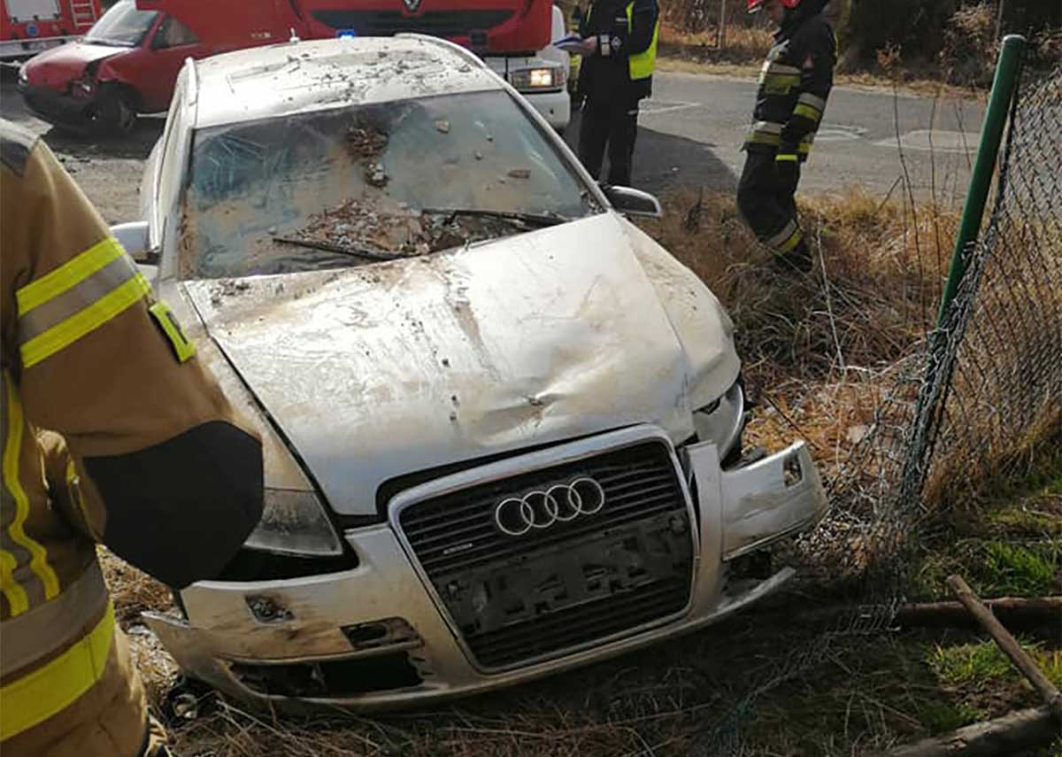 Kierująca fiatem chciała skręcić w lewo. Niestety podczas wykonywania manewru, kobieta nie ustąpiła pierwszeństwa audi i doprowadziła do poważnego zderzenia. Kierowca audi chciał za wszelką cenę uniknąć zderzenia i gwałtownie skręcił. Siła zderzenia samochodów musiała być ogromna.