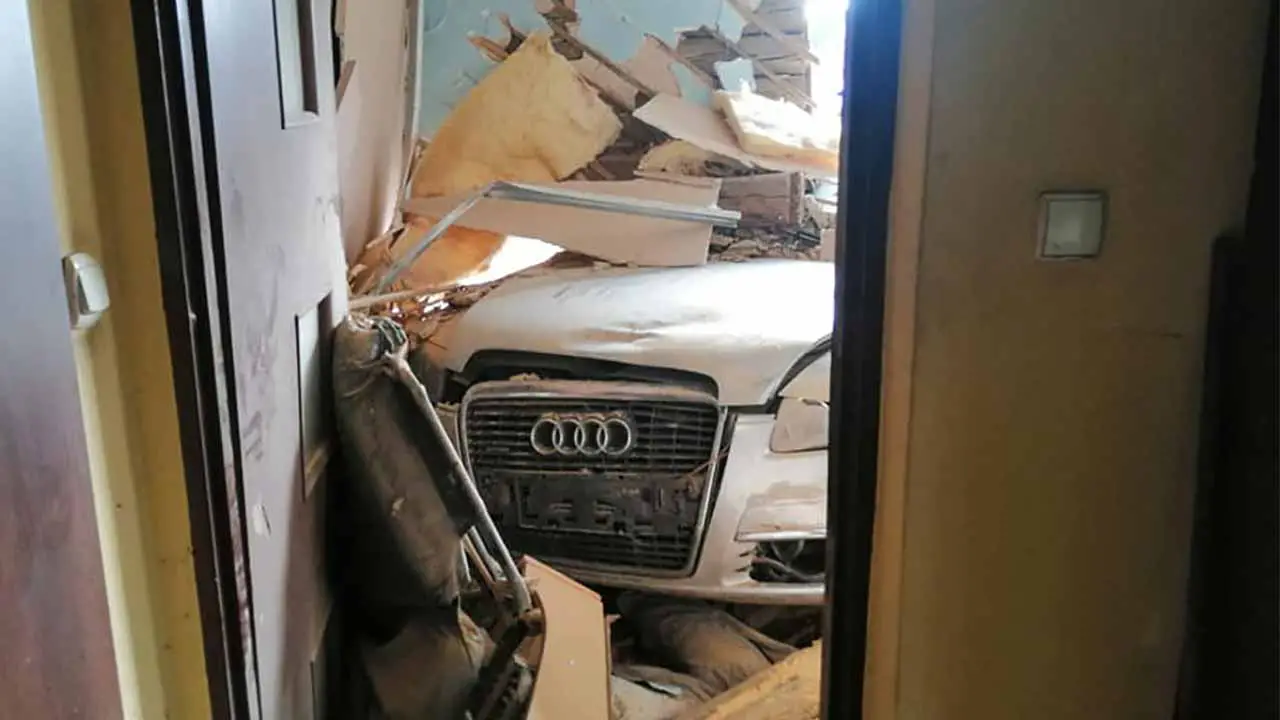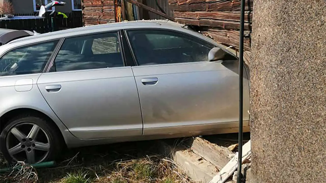 Audi po zderzeniu wypadło z drogi, staranowało płot, a następnie uderzyło w ścianę pobliskiego domu. Drewniana ściana po zderzeniu rozpadła się na kawałki. Samochód zatrzymał się w jednym z pokoi. Na miejsce została wezwana policja, karetka pogotowia ratunkowego oraz straż pożarna.