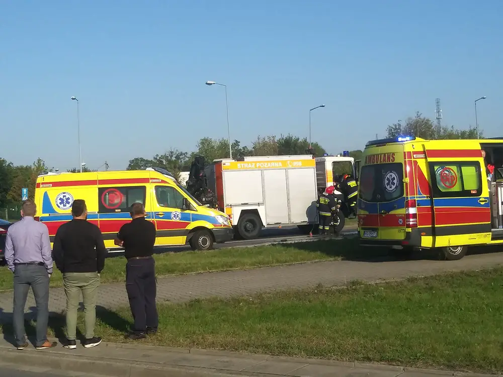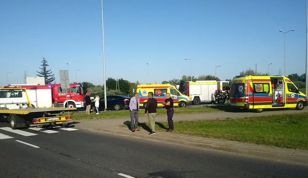 Na miejsce wypadku przyjechały służby ratunkowe. Strażacy zajęli się rozbitymi samochodami oraz sprzątaniem rozbitych butelek z jezdni. Ciężarna pasażerka forda została zabrana do karetki. Medycy zajęli się również kierowcą toyoty. Na miejscu jest policja.