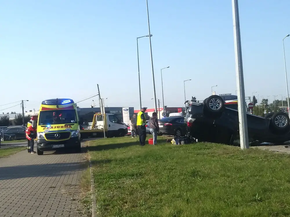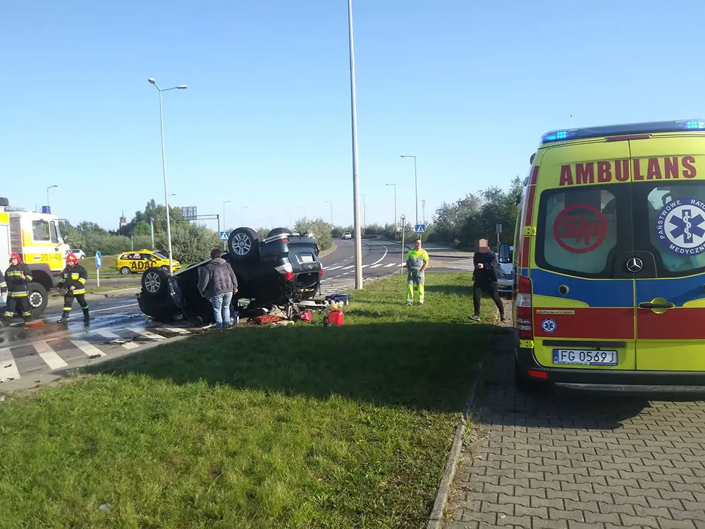 Do wypadku doszło w środę, 11 września, na rondzie Kasprzaka w Gorzowie. Terenowa toyota uderzyła w forda i dachowała. Kobieta w ciąży i kierowca toyoty zabrani do karetek.