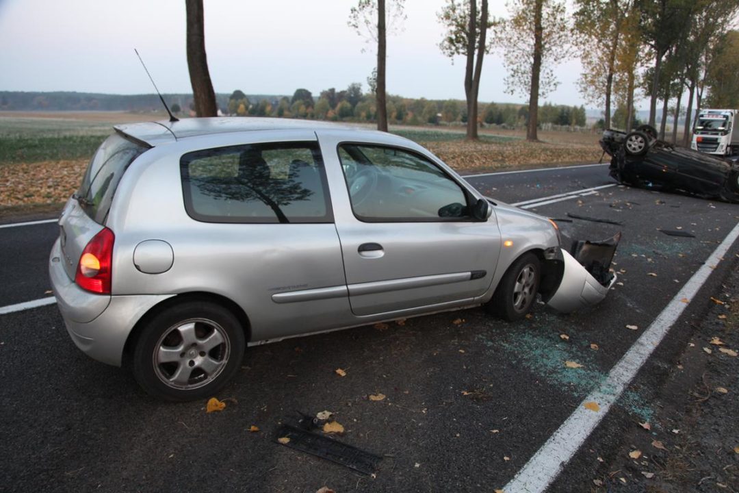 Do wypadku doszło w środę, 17 października, na drodze za Gęstowicami (powiat krośnieński). Renault clio uderzyło w lagunę, której kierowca wyprzedzał, wpadł w poślizg, nie opanował auta i dachował. Trzy osoby trafiły do szpitala.