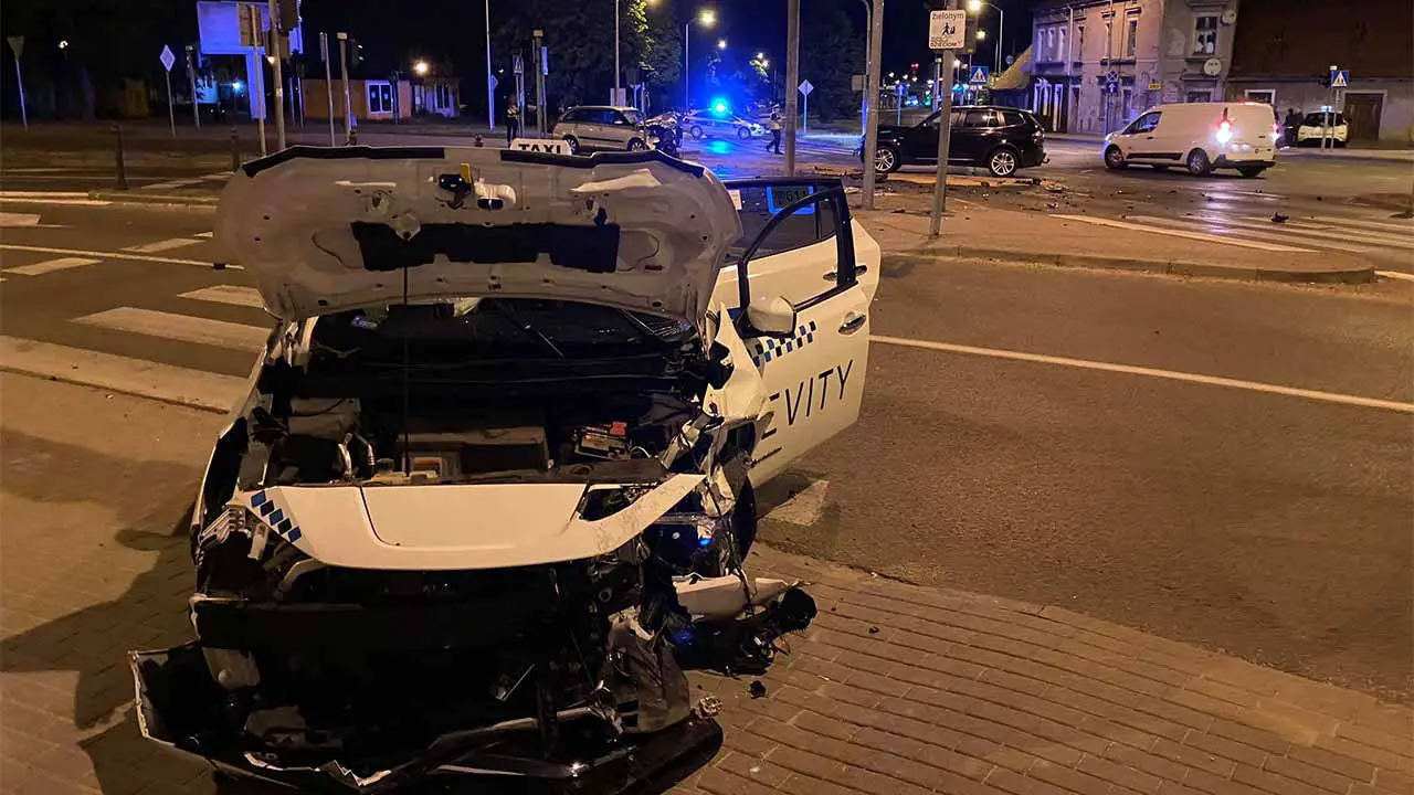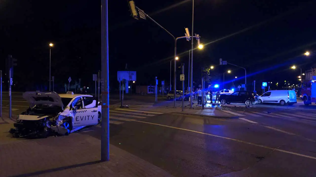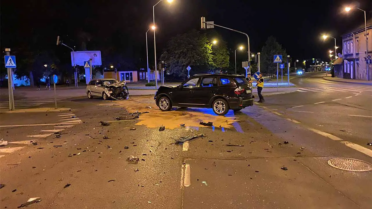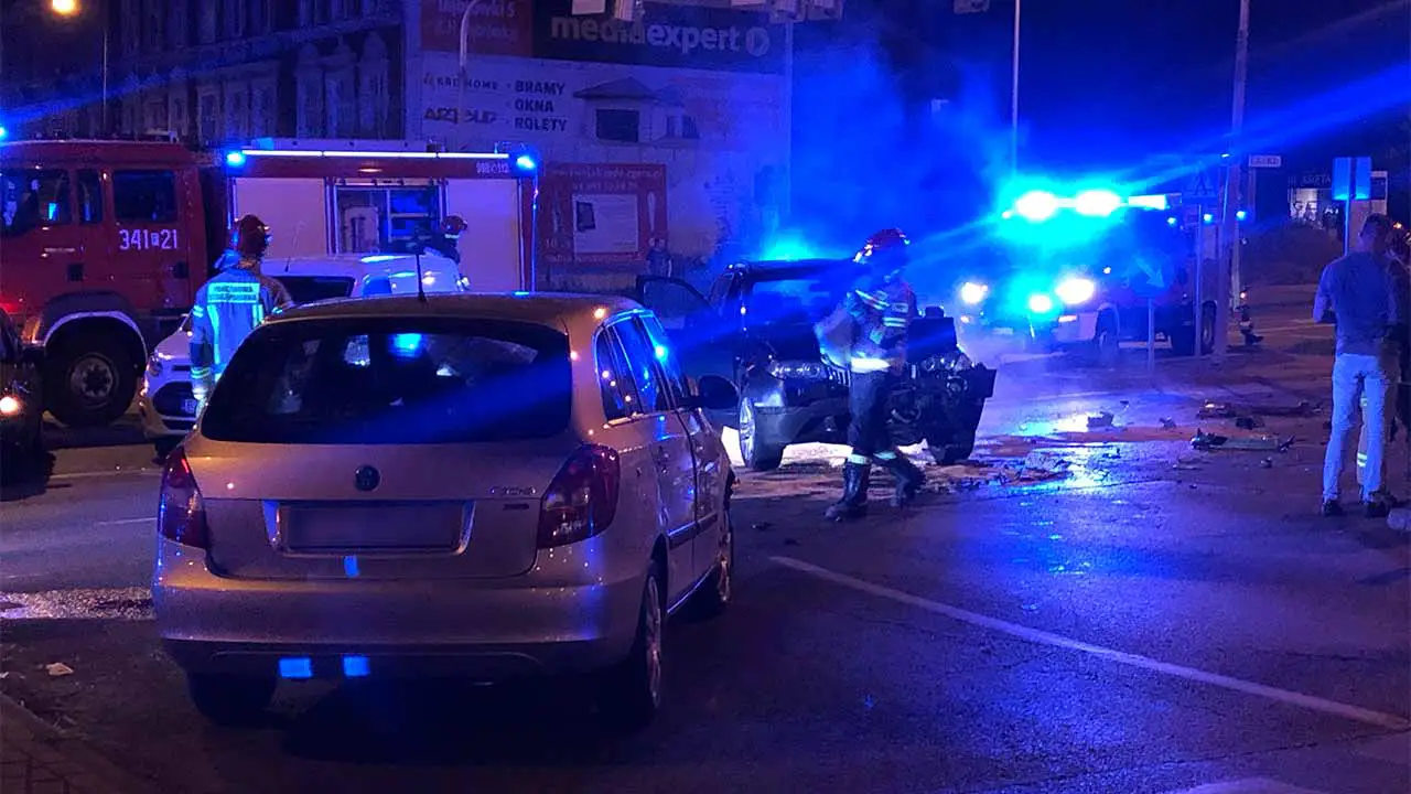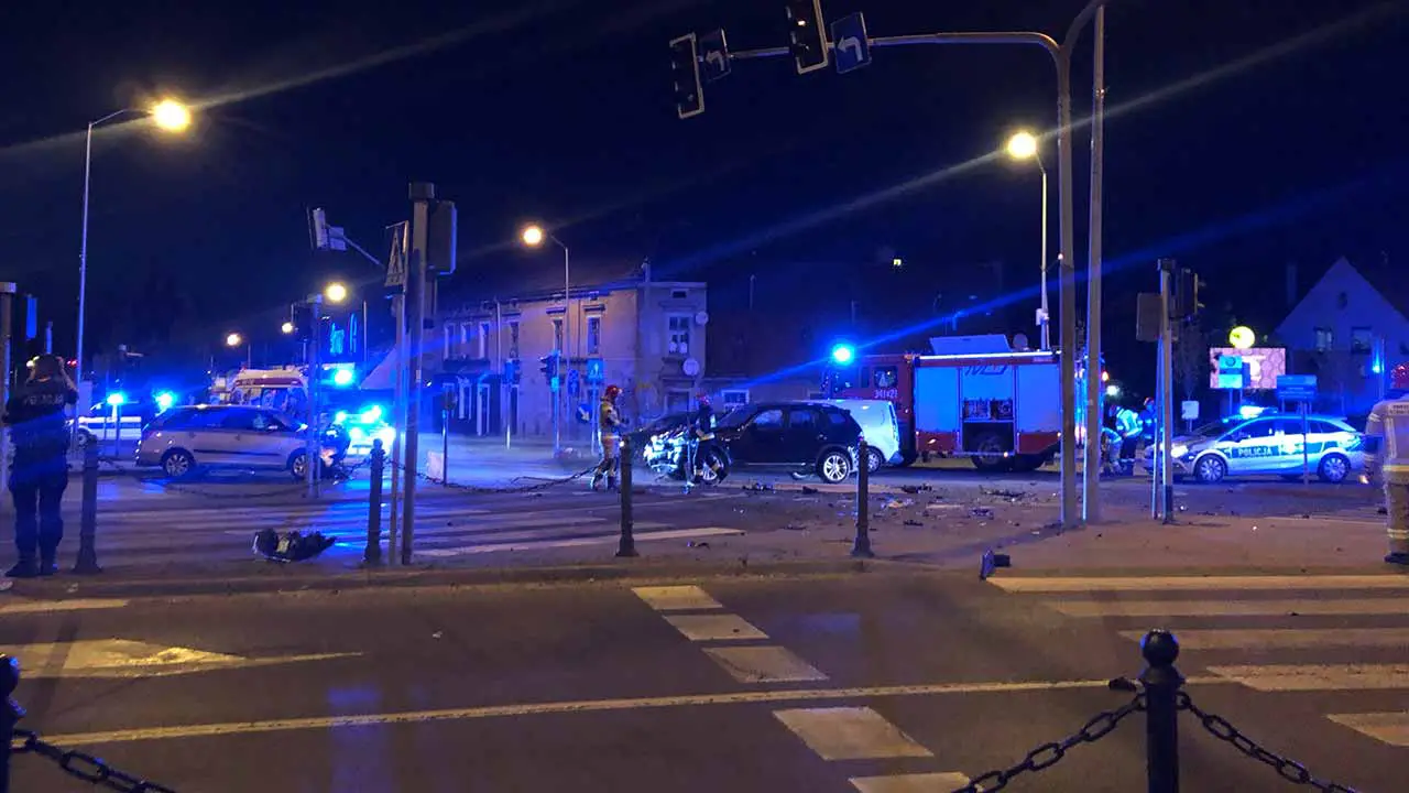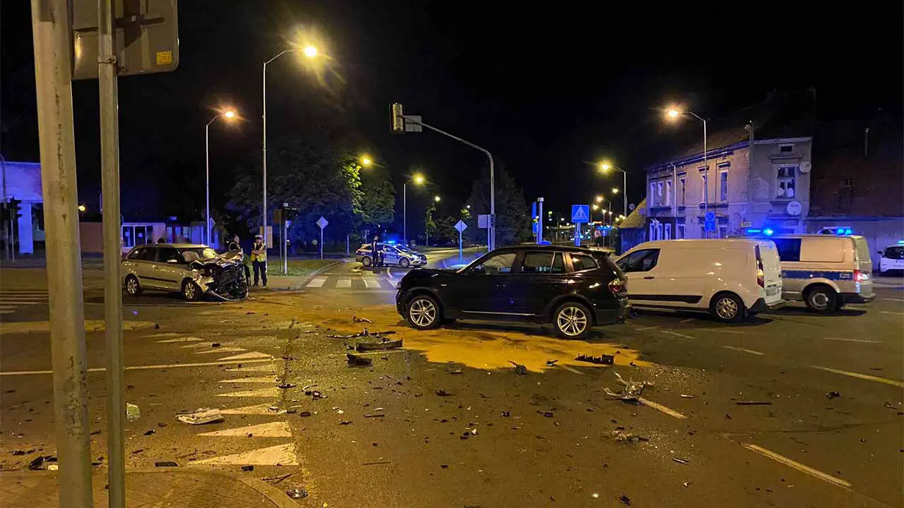 Do zderzenia trzech samochodów doszło na środku krzyżówki. Nissan po zderzeniu wypadł z drogi i zatrzymał się pod bramą aresztu śledczego. Kierujący BWM jechał ul. Długą i skręcał w ul. Łużycką. Kierująca Skodą planowała skręcić z ul. Łużyckiej w ul. Dąbrówki. Samochody są bardzo mocno rozbite.