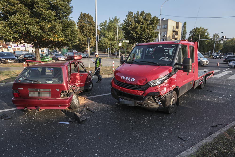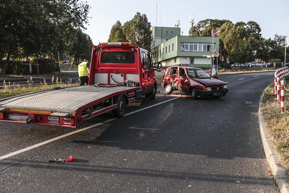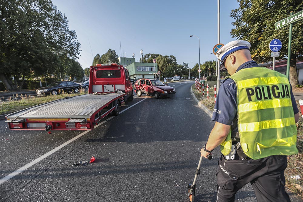 Do wypadku doszło w czwartek, 23 sierpnia, na skrzyżowaniu ulic Podgórnej, Waryńskiego i Lwowskiej. Kierująca fiatem wjechała pod lawetę pomocy drogowej. Doszło do mocnego czołowo-bocznego zderzenia. Jedna osoba została ranna.