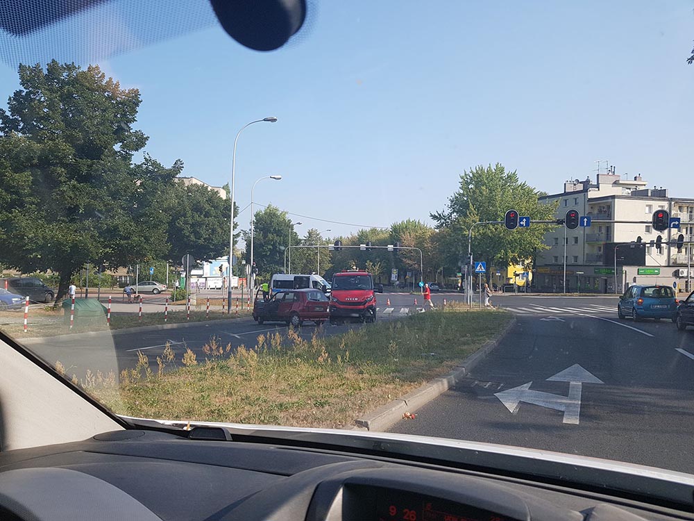 Kierujący lawetą pomocy drogowej jechał ul. Waryńskiego w kierunku ul. Lwowskiej. Z ul. Podgórnej jechała kierująca fiatem. Wjechała na skrzyżowanie skręcając. Niestety nie zauważyła prawidłowo jadącej lawety pomocy drogowej. Doszło do mocnego czołowo-bocznego zderzenia. Siła była tak duża, że fiat został wepchnięty bokiem na ul. Lwowską.