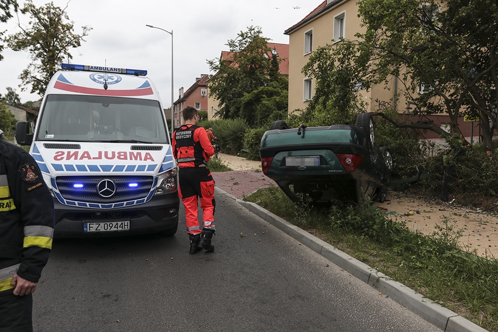 Na miejsce wypadku przyjechały służby ratunkowe. Kierowca forda został zabrany do karetki pogotowia ratunkowego i przewieziony do szpitala. Na miejscu wypadku pracują policjanci z zielonogórskiej drogówki. Trwa ustalanie przyczyny oraz przebiegu wypadku. Ulica Dworcowa jest zablokowana.