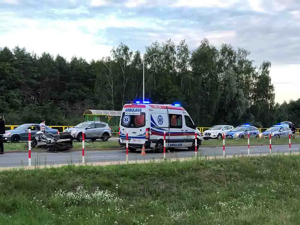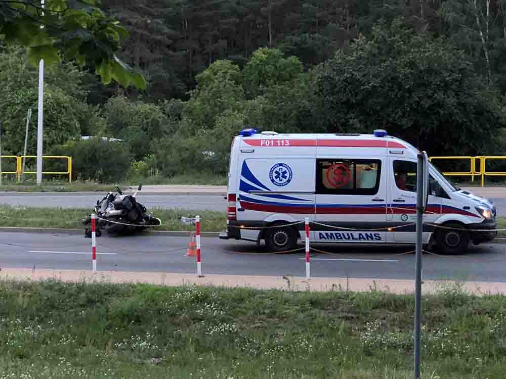 Na miejscu wypadku jest karetka pogotowia ratunkowego. Do karetki został wniesiony motocyklista. Świadkowie zdarzenia mówią nam, że mężczyzna był nieprzytomny. Na miejscu są trzy radiowozy zielonogórskiej policji.