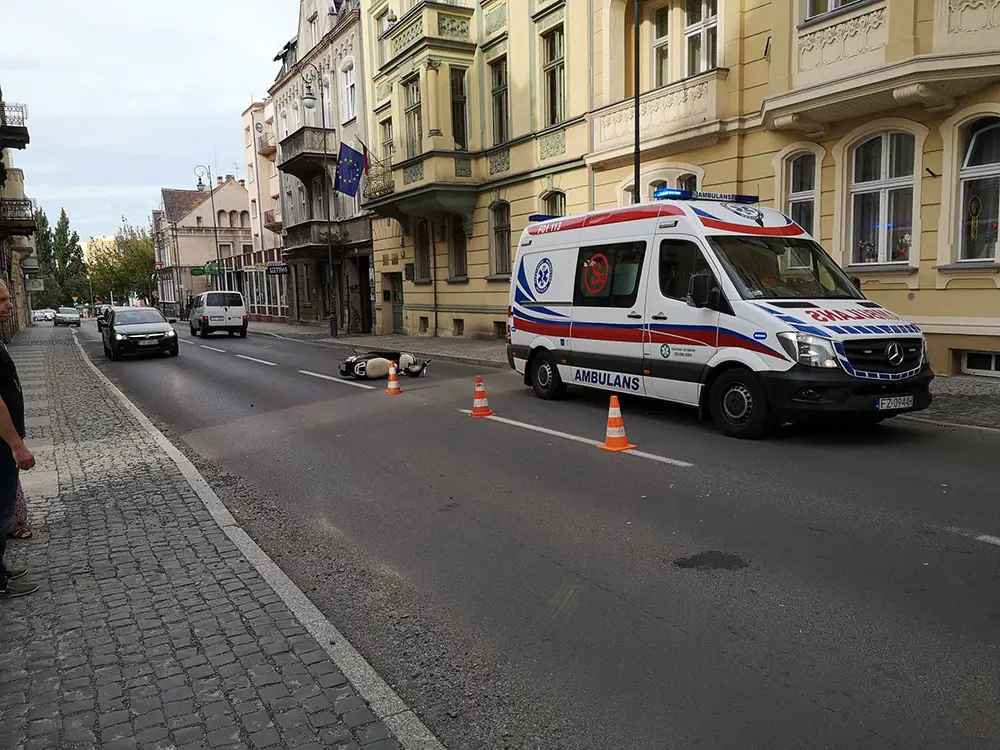 Do wypadku doszło po godz. 17.00. Z pierwszych ustaleń wynika, że kierująca oplem uderzyła w skuter. Na miejsce wypadku przyjechały służby ratunkowe oraz zielonogórska drogówka. Ranny kierowca skutera został zabrany do karetki i przewieziony do szpitala.