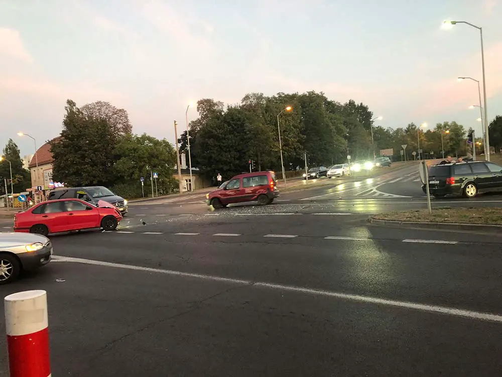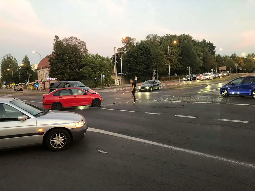 21:10 – Seat wjechał na skrzyżowanie na czerwonym świetle. Z dużą siłą uderzył w poprawnie jadącego volkswagena passata. Siła uderzenia była ogromna. W seacie znajdowały się trzy osoby, jedna została ranna. W passacie podróżowała kobieta z psem, która doznała ogromnego szoku i została zabrana do szpitala na szczegółowe badania.