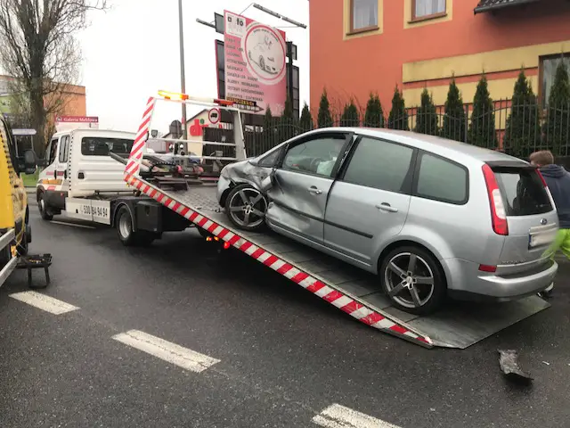 Ford po zderzeniu wpadł na przeciwległe pasy ruchu. Na szczęście nie jechały tam wtedy samochody.