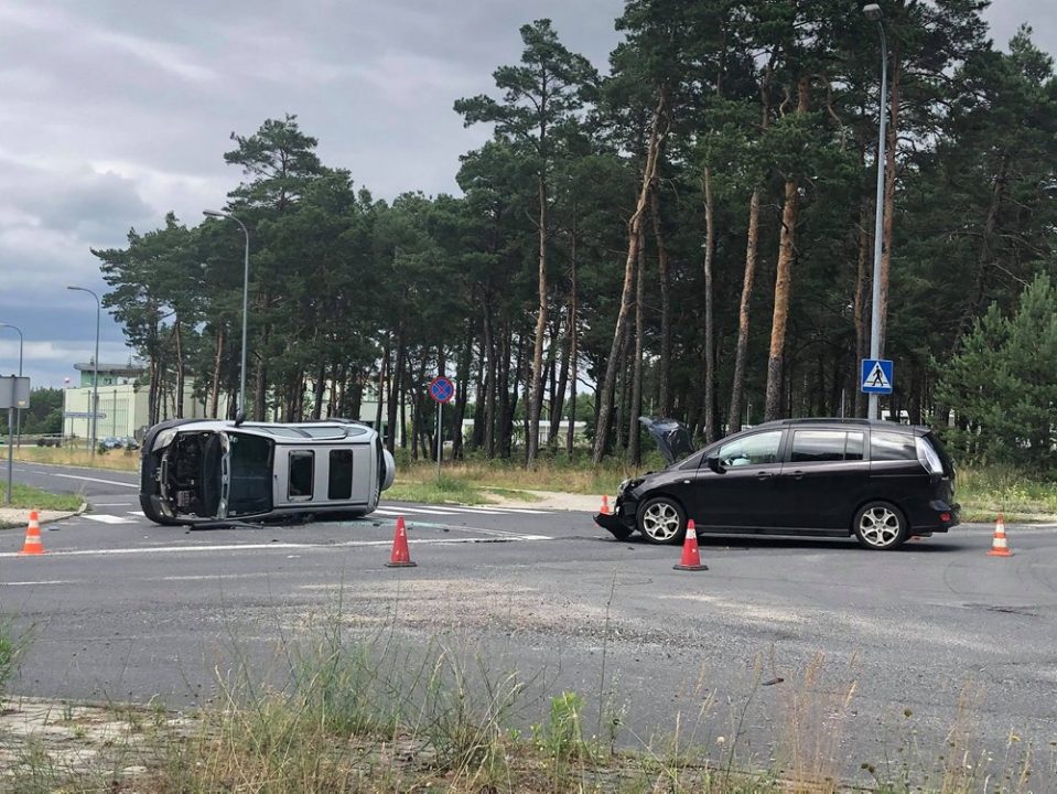 Jeden z samochodów, renault biorący udział w zderzeniu leży na boku. – Ranne zostały dwie osoby – mówi st. kpt. Arkadiusz Kaniak, rzecznik zielonogórskiej straży pożarnej.